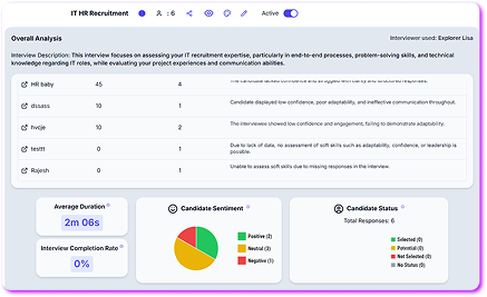 Run the interview and receive live feedback on speech clarity, confidence, tone, filler words, and pacing. Questa provides actionable insights after every session to help candidates (or internal hires) improve.